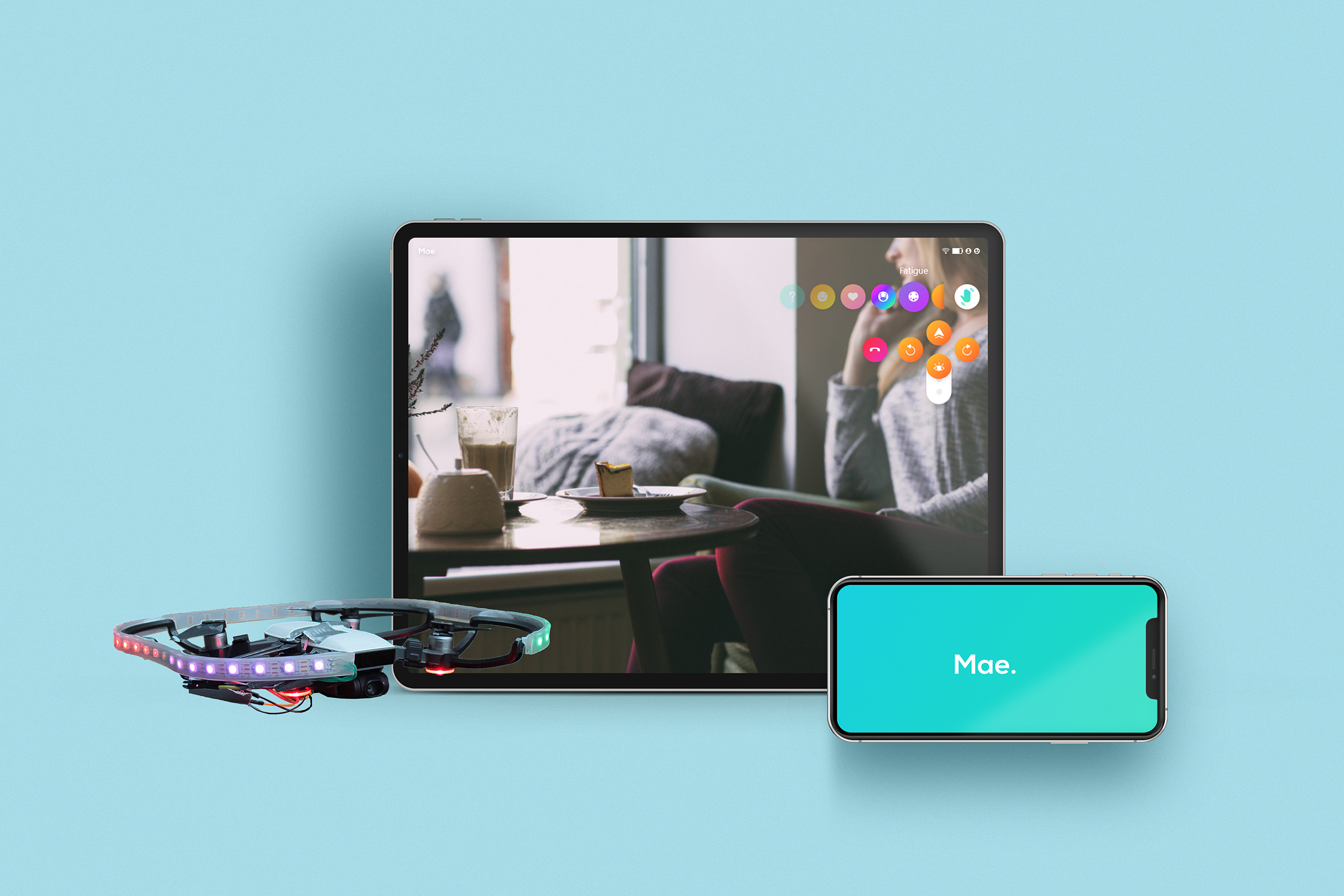 MAE. est le drone de compagnie qui permet aux patients de profiter de leurs proches et de sortir des murs de l'hôpital, sans quitter leur lit, en toute autonomie.