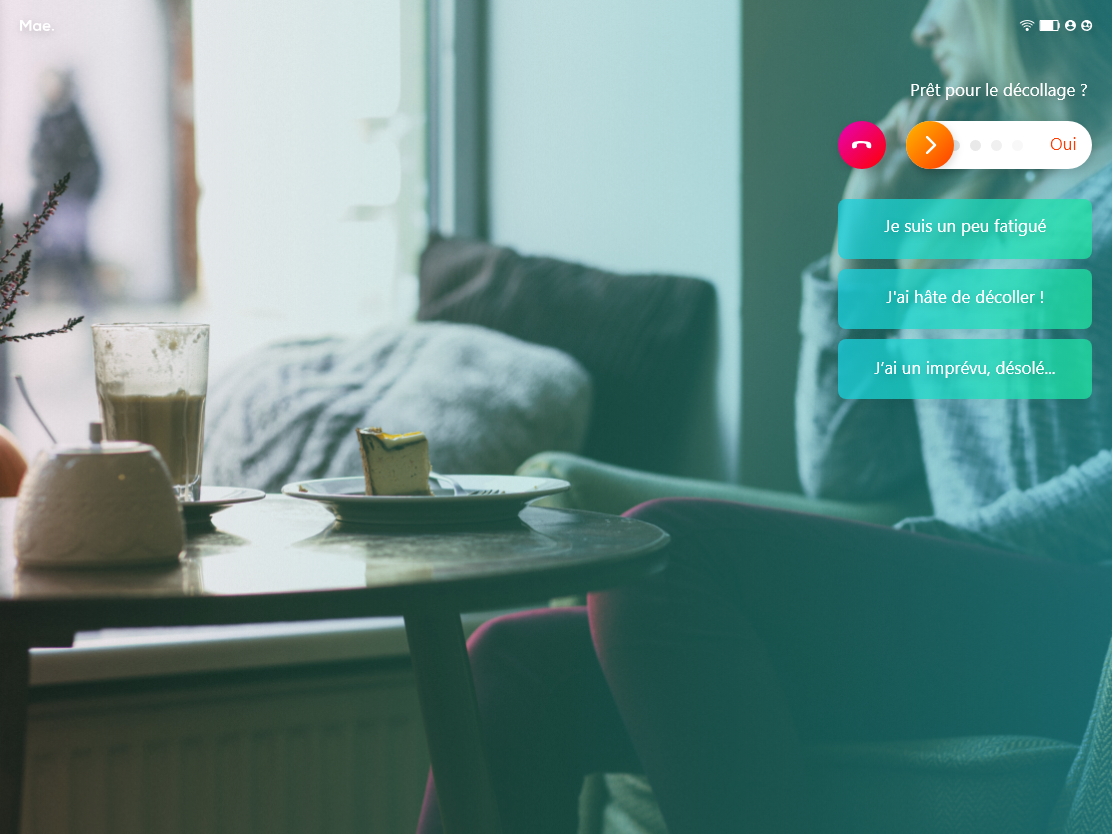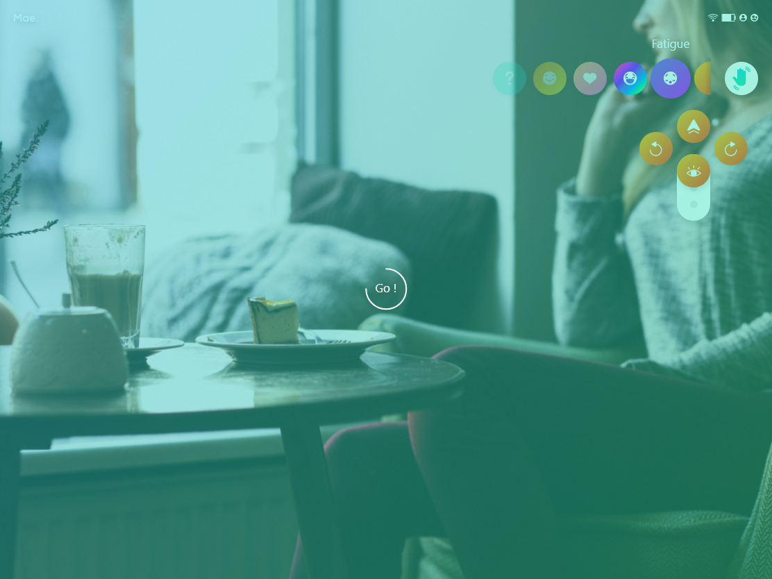 Grâce aux retours des patients, nous avons pu affiner certaines parties de notre application, comme par exemple la manière de piloter, les émojis, les couleurs, la distance entre les éléments, etc. En effet, un patient malade et fatigué, allongé dans son lit et qui utilise une tablette est installé dans une position particulière : le placement des éléments de contrôle a donc été fait en fonction de ce besoin.